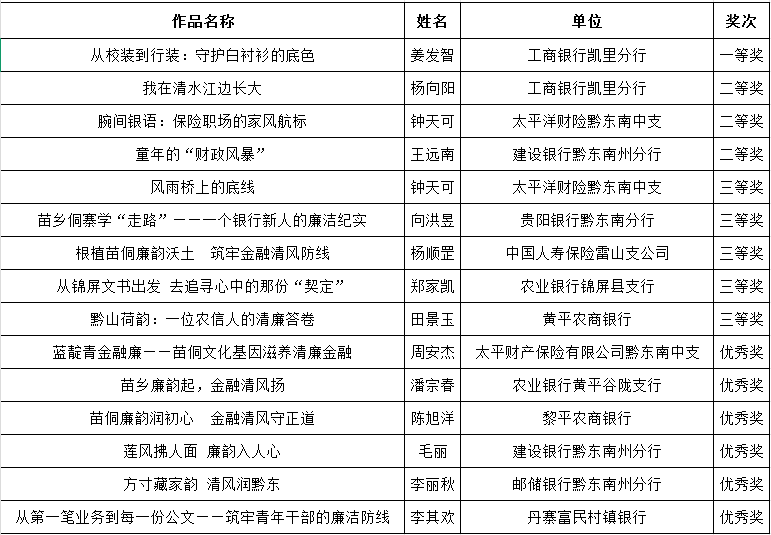 根据《关于开展黔东南州银行业保险业“苗侗廉韵金融清风”清廉金融文化主题征文比赛和微视频创作大赛的通知》(黔东南银协发〔2025〕24 号